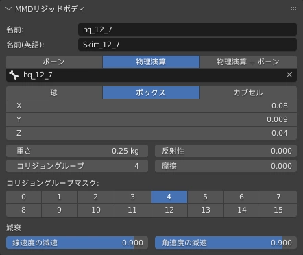 リジッドボディワールドをMMDモデルに適した設定に更新します。 もし、⚠️が表示された場合は、このボタンを押すと物理演算の問題が解決される場合があります。